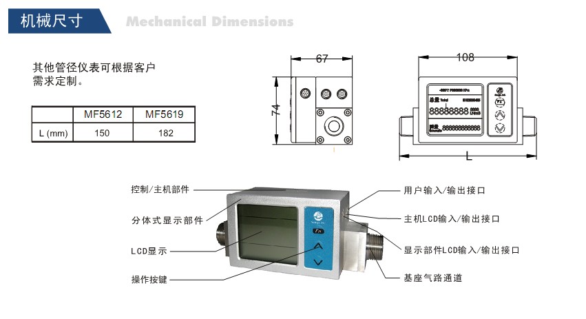 产品详情:MF5600系列分体式显示气体质量流量计是专门为需将显示和仪器主体分离的应用需要而设计的,例如诊所供氧机构